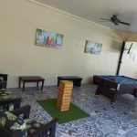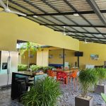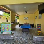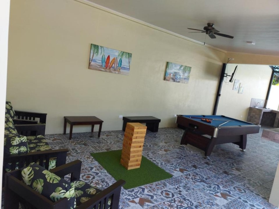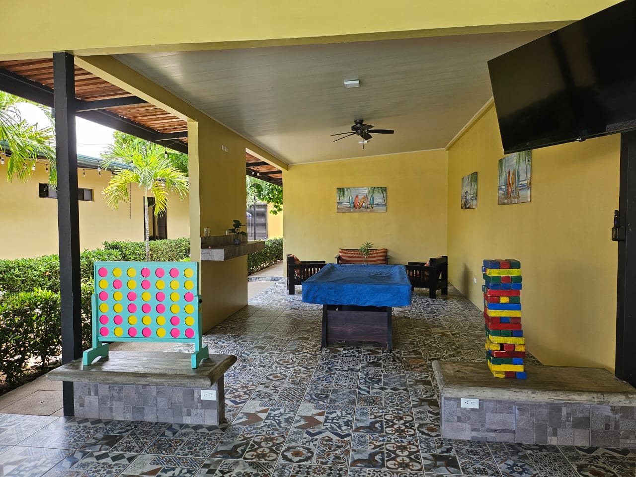 Area de Asado y Juegos con un Bar con bancos, fregadero adicional, asador de gas, congelador, Mesa de pool, TV Cable pantalla plana, excelente ventilacion con ventiladores de techo