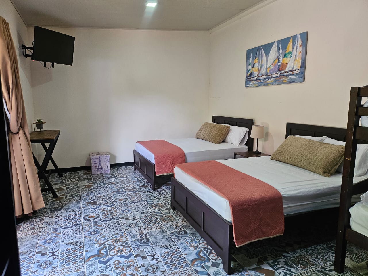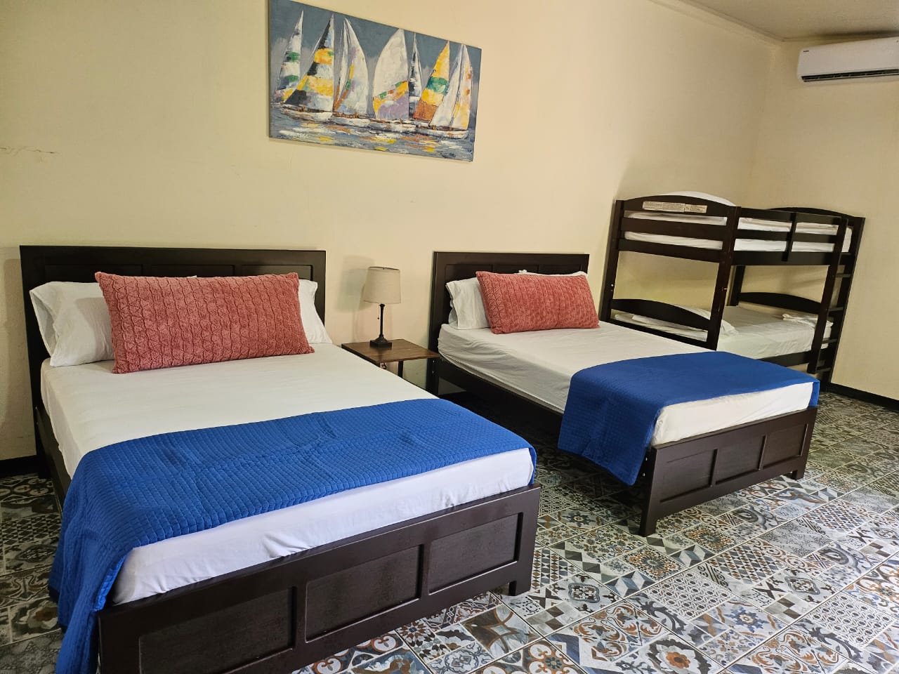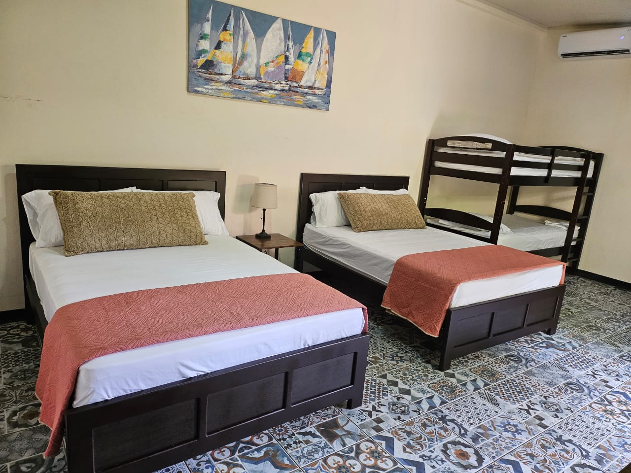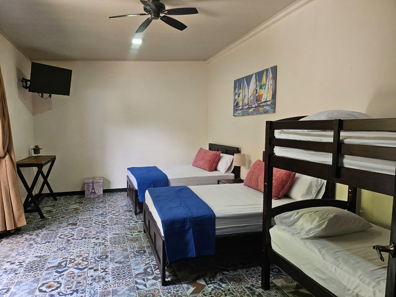 Habitacion #3 para 6 personas cuenta con dos camas matrimoniales y un camarote individual arriba y abajo, baño completo con agua caliente y secador de pelo, aire acondicionado, TV Cable pantalla plana, abanico de techo, closet